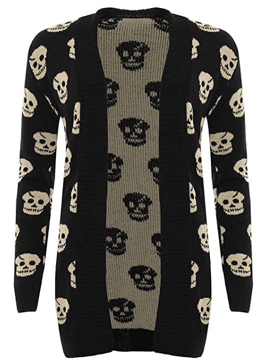 I love the skulls, design, and coziness of this cardigan sweater!